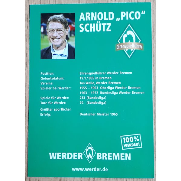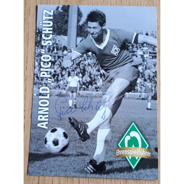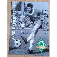 original handsignierte Autogrammkarte von Pico Schütz, Deutscher Fußballmeister 1965 mit Werder Bremen, bereits verstorben.