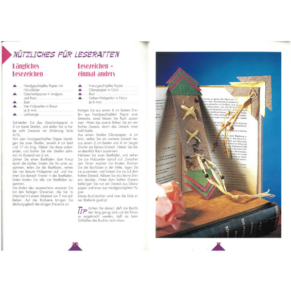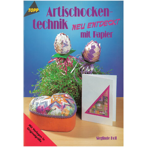 Hier sind in vielen ganzseitigen farbigen Abbildungen Papierarbeiten mit Artischockentechnik zu sehen. Die Erklärungen dazu sind immer angegeben.
