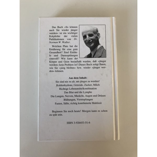 Das Buch so können auch sie wieder jünger werden ist ein wichtiger Eckpfeiler der vielen Publikationen von Doktor Norman W. Walker. Welchen Platz hat die Ernährung für eine gute Gesundheit? Sind Einläufe und Darmspülungen sinnvoll? Wie kann der Körper und Geist beeinflusst werden, dass jünger werden kein Problem ist? Dieses Buch zeigt Ihnen, wie sie jung bleiben beziehungsweise wieder jünger werden können.