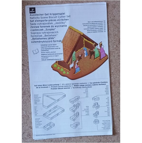Ausstecher-Set für eine Lebkuchenkrippe mit Figuren. Mit Anleitung, zusätzlich lege ich ein kleines Wellholz und einen Sternausstecher bei, der von der Größe perfekt dazu passt