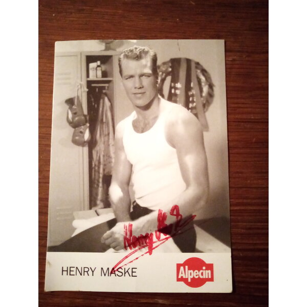 Unterschrift aus den Neunzigern. Auf der Rückseite Aufzählung seiner bis zu diesem Zeitpunkt erlangten Erfolge.