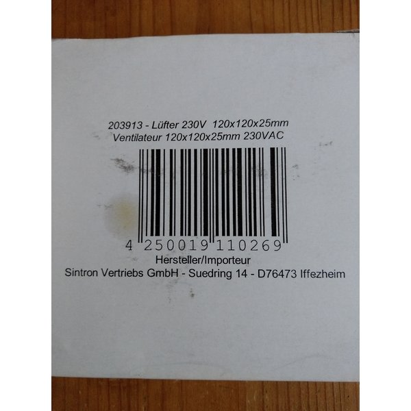 Lüfter 120x120x25mm, 230 V AC/ 50/60Hz 0,08/0,07A 17,6/15,4W 2000/2400Um/Min, 50/60cbm/Std Gewicht ca. 250g - Gute Qualität.