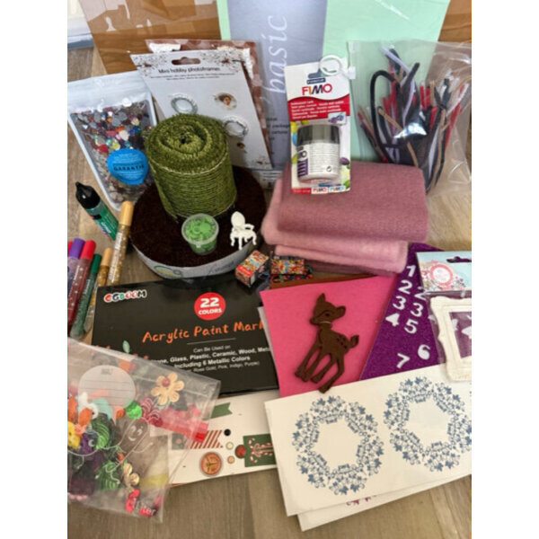 Hier bekommst du ein buntes Paket mit ganz tollen Sachen bestehend aus Papier , Filzstifte, Sticker, Deko Teile. Floristik, Kleber Bänder schleifen etc Lass dich überraschen Das Foto zeigt nur einen Teilausschnitt. Verrückte 5 Kilo !!