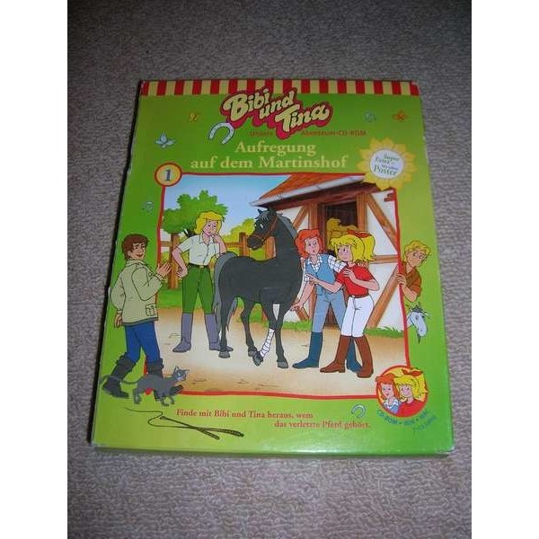 BIBI verbringt ein Wochenende bei ihrer Freundin TINA auf dem MARTINSHOF. Gleich nach Bibis Ankunft sehen die beiden nach ihren Pferden Sabrina und Amadeus. Plötzlich taucht auf dem Hof ein fremdes Pferd auf, dessen Fessel verletzt ist. Wo kommt es her? Wem gehört es? Und vor allem: was ist mit ihm geschehen? Auch der herbeigerufene Tierarzt kann BIBI UND TINA bei der Suche nach dem Besitzer nicht weiterhelfen. Als sie AUF DEM MARTINSHOF eine Brieftasche mit einem Liebesbrief finden und ein fremder Junge auftaucht, der behauptet, der Graf von Hohenfels zu sein, beginnt für BIBI UND TINA ein spannendes Abenteuer, an dem du Dich beteiligen kannst. Verfolge mit den beiden Freundinnen die Spuren, die zur Lösung des Falles beitragen. Außerdem mußt du ein Pferd zum Ausritt vorbereiten und ein Kätzchen mit ihren süßen Jungen zu finden. Viel Spaß und nichts wie losgespielt!