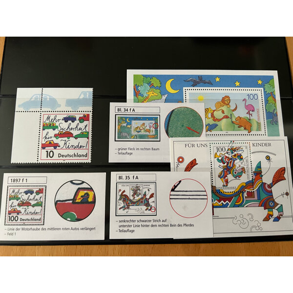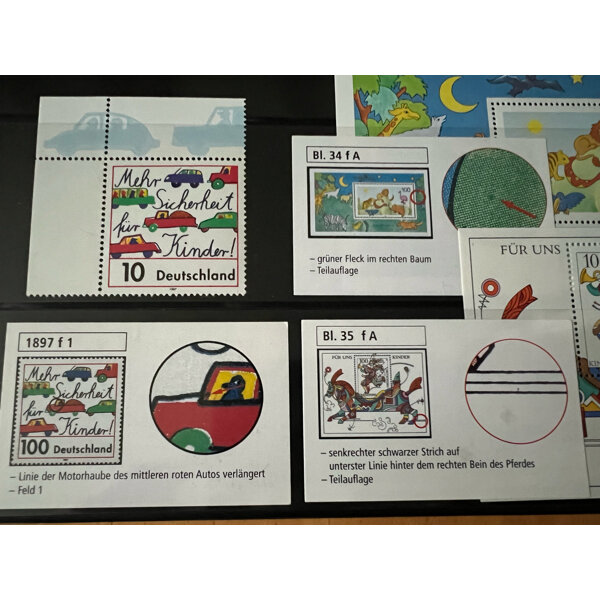 Aus Sammlungsauflösung: 3x BUND Plattenfehler 1879 f1, Bl. 34 fA, 35 fA POSTFRISCH im Steckblatt mit Beschreibungskärtchen (davon 2 Blöcke)