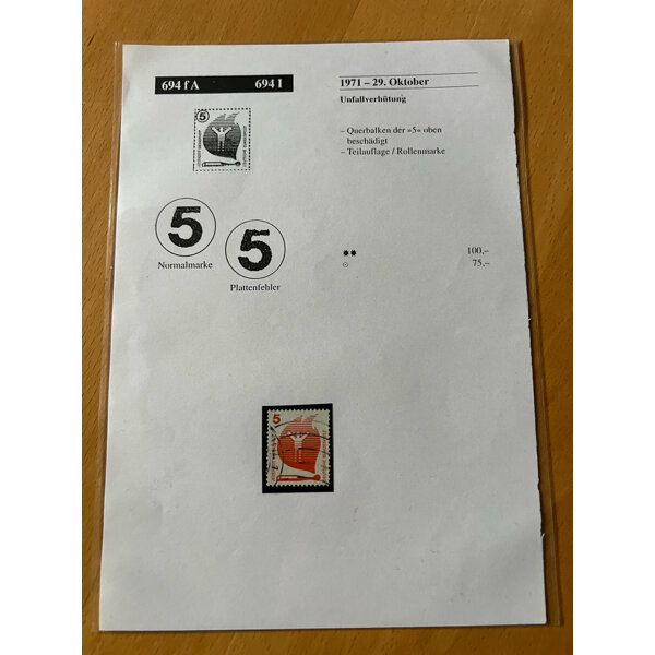 2x BUND Plattenfehler 694 fA und 1395 f3 mit Beschreibung aus Sammlungsauflösung
