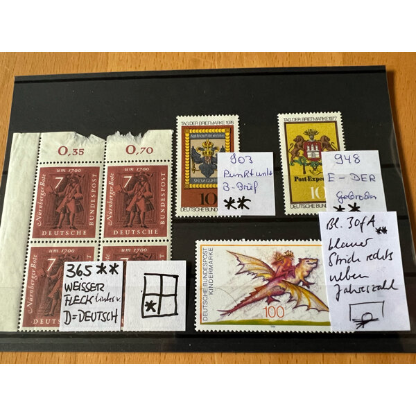 BUND Plattenfehler: 4 PF Steckblatt mit Beschreibung
