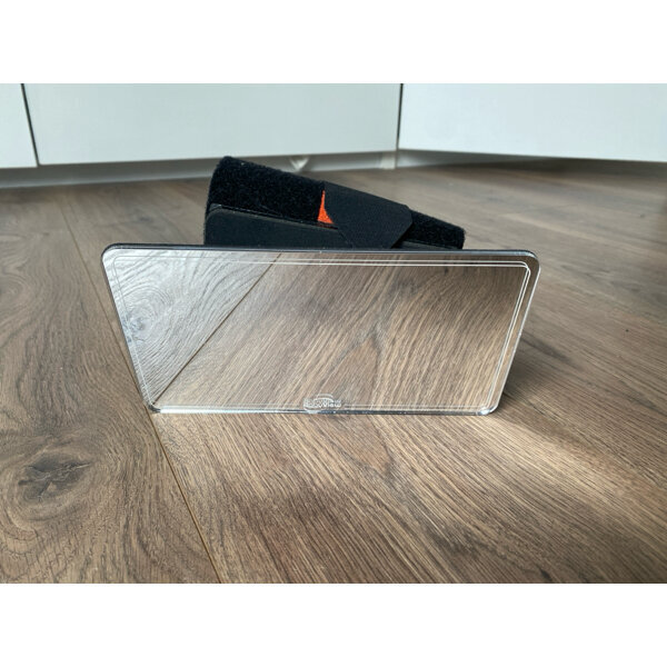 Sehr leicht an der Kopfstütze zu monieren (passte bei uns in jedes Auto, durch Klettverschulss-Gurt sehr schnell zu befestigen).