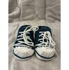 Gehäkelte Babyschuhe mit einer Sohlenlänge von ca. 9,5 cm.