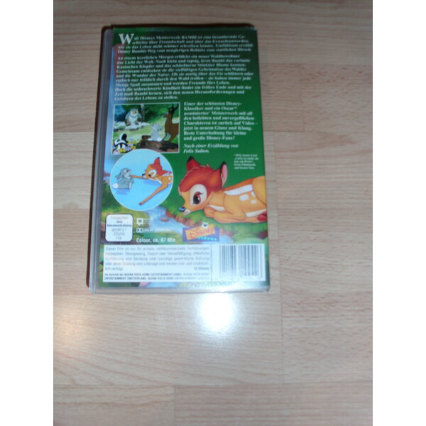 Einfühlsam beschreibt Disney Bambis Weg vom neugierigen Rehkitz zum stattlichen Hirsch. Noch klein und tapsig, lernt Bambi das muntere Kaninchen Klopfer und Blume, das schüchterne Stinktier, kennen. Gemeinsam entdecken sie die vielfältigen Geheimnisse des Waldes und werden so Freunde fürs Leben.