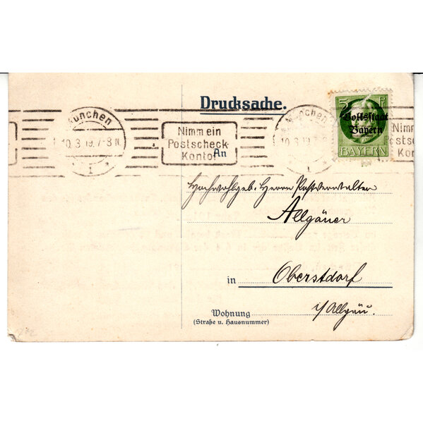 Deutsches Reich Postkarte Briefmarke Briefmarken Bayern Drucksache Caritasverband