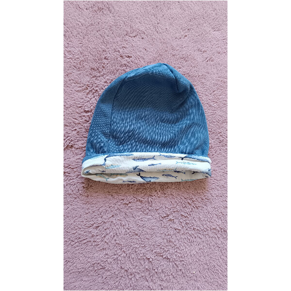 Mütze/Beanie aus Baumwollsweat und Baumwolljersey. Passt ca. Bei einem Kopfumfang von 55-58 cm. Wie neu.