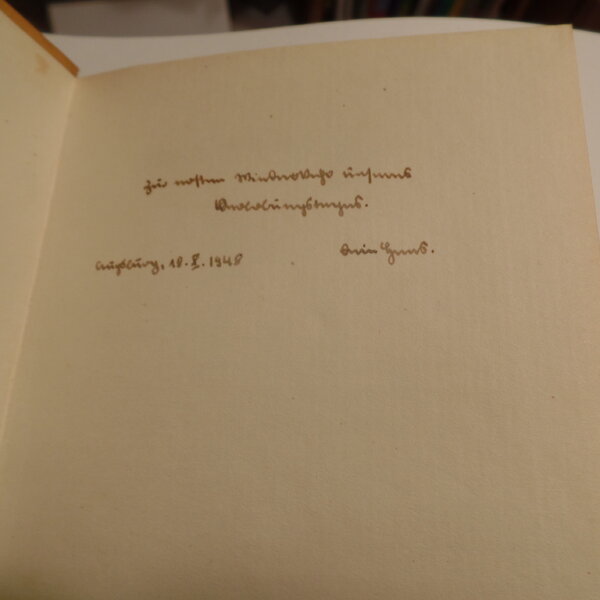 handschr. Widmung aus dem Jahr 1948, innen etwas gewellt (Wasser wohl), ansonsten im Hinblick aufs Alter gut