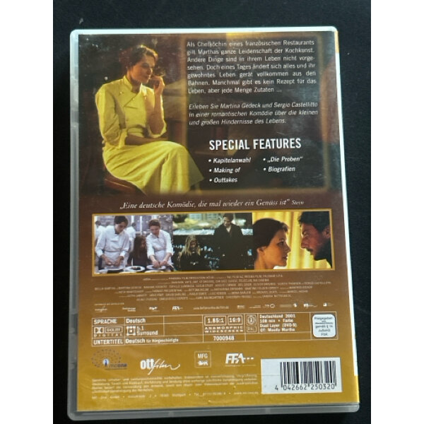 Als Chefköchin in einem kleinen Restaurant ist Martha beim Kochen perfekt, während sie im sonstigen Leben und besonders im Umgang mit Männern eher unbeholfen ist. Nach dem Unfalltod der Schwester muss sie sich nicht nur um deren kleine Tochter kümmern, sondern auch ein neuer Koch, ein lustiger Italiener fordert ihre Aufmerksamkeit.