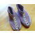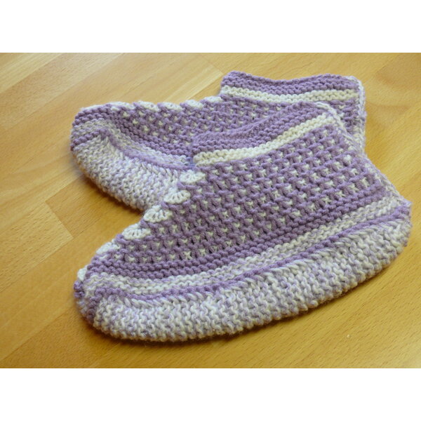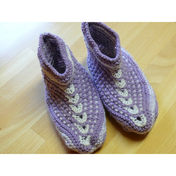 Gestrickte (nicht von mir) lila Bettschuhe. Handarbeit.