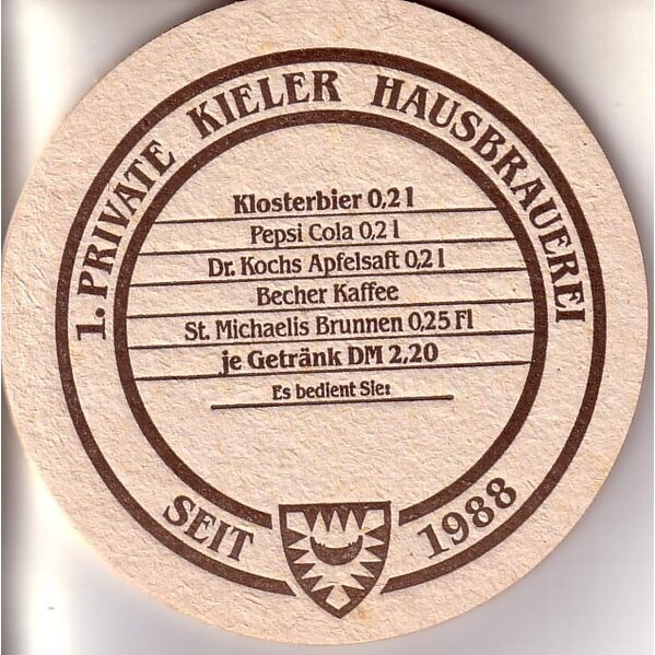 Seltener Bierdeckel der Kieler Kloster Brauerei!