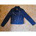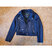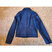 Bikerjacke für junge Ladies. Sieht aus, als wäre es aus blauem Wildleder, ist aber aus Stoff.
