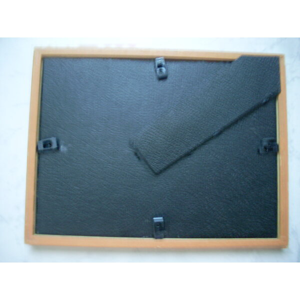 Ein Bilderrahmen mit Holzumrandung. Er kann aufgehängt werden oder auch stehen. mit Passpartout