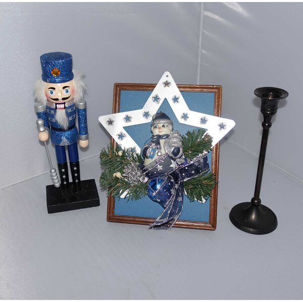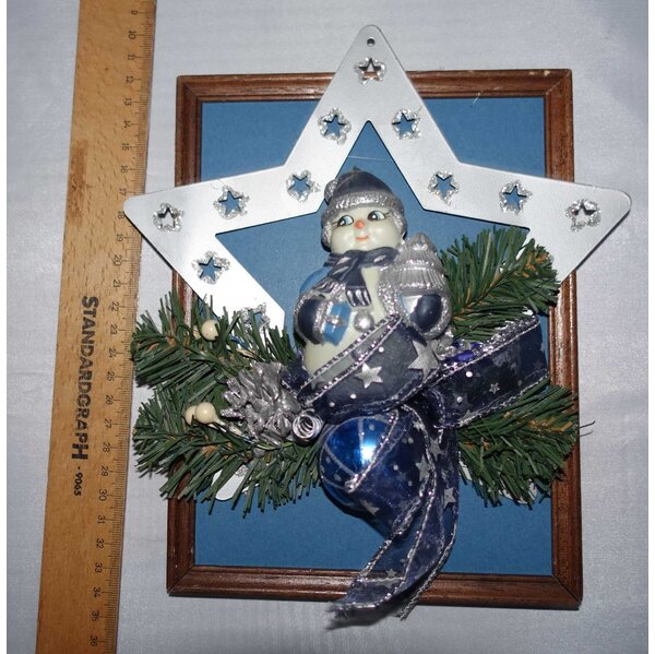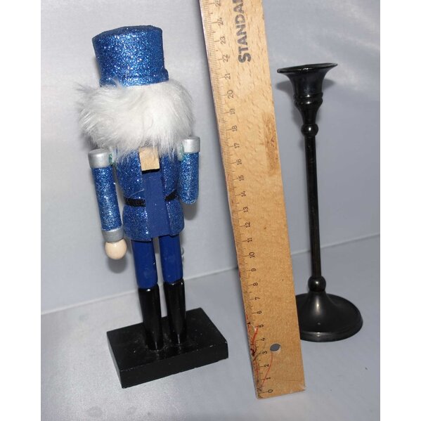 Das Bild ist aus verschiedenen Materialien hergestellt. Es kann gestellt oder gehängt werden. Der Kerzenständer ist aus metall. Der Nussknacker wrde etwas repariert. Die Arme wurden neu verleimt. Der Hebel hinten ist ab, aber das sieht man von vorne nicht. Er kann den Mund trotzem öffnen