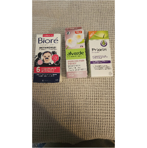 Priorität Liquid 50ml.Originalkarton. Biore Aktivkohle 6 Stück im Originalkarton. DM Alverde Perfekt Teint Tagescreme 50ml im Originalkarton. Ich verschicke versichert.