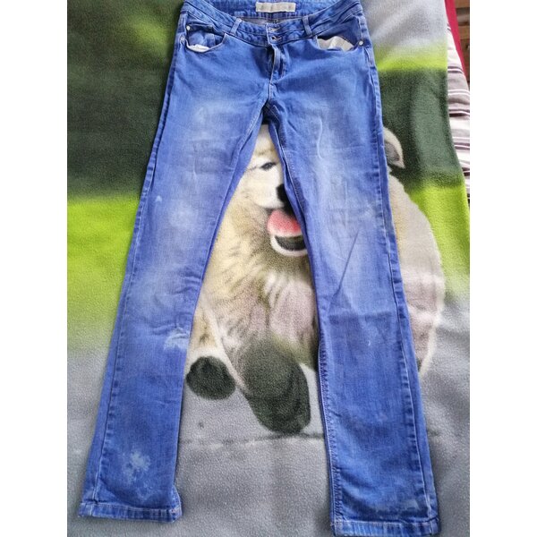 Gr. 42, nicht wirklich stretchig, bundweite ca 39cm,Innenbeinlaenge ca. 77cm, eng geschnitten,