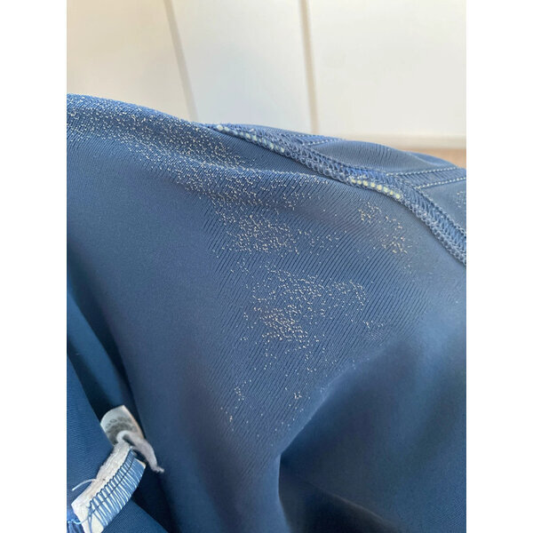 sehr oft zu Aqua Sport Kursen getragen, daher auch schon einige Abnutzungen am Material. An einigen Stellen ist das Material dünner, Beschichtung hat Abrieb (S.Detailfotos)