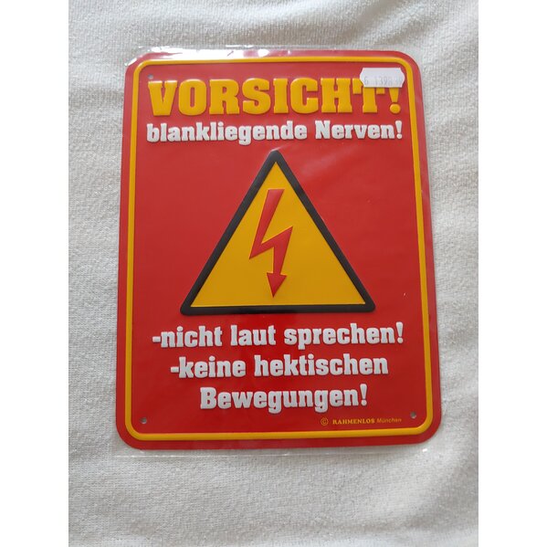 Witziges Blechschild mit Spruch "Vorsicht! blankliegende Nerven!