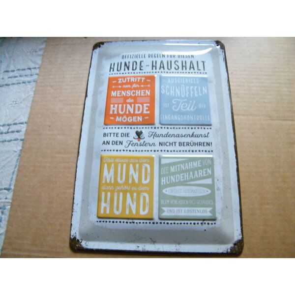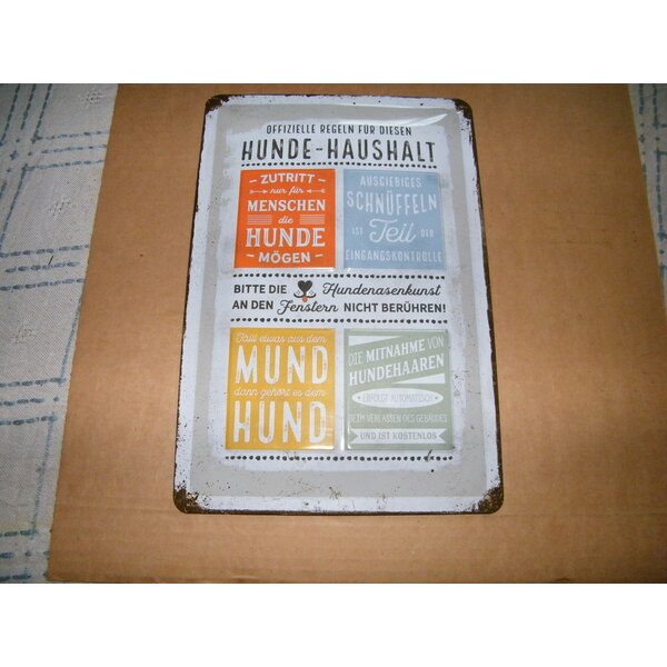Für Hundefreunde, Hundeliebhaber ist dieses witzige Blechschild ein absolutes MUSS ! Das Schild stammt aus der Wohnung meiner Schwester, die keinen Hund mehr hat.