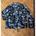 Eine Blousonjacke, schwarz mit weißem floralem Muster. Vorne Reißverschluss, an der Taille mit einem Band in der Weite regulierbar.