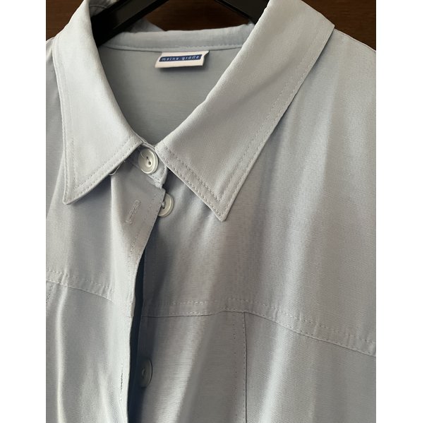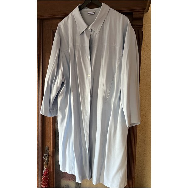 Hellblaue Bluse, Farbe ist wie auf Foto 1 links unten. Ein richtig schönes hellblau. Achsel zu Achsel 68 cm, Länge 90 cm.