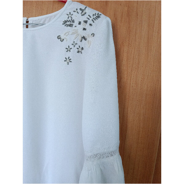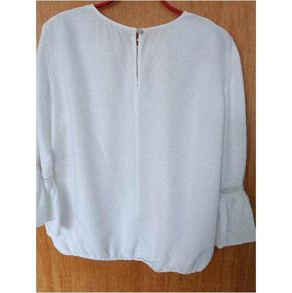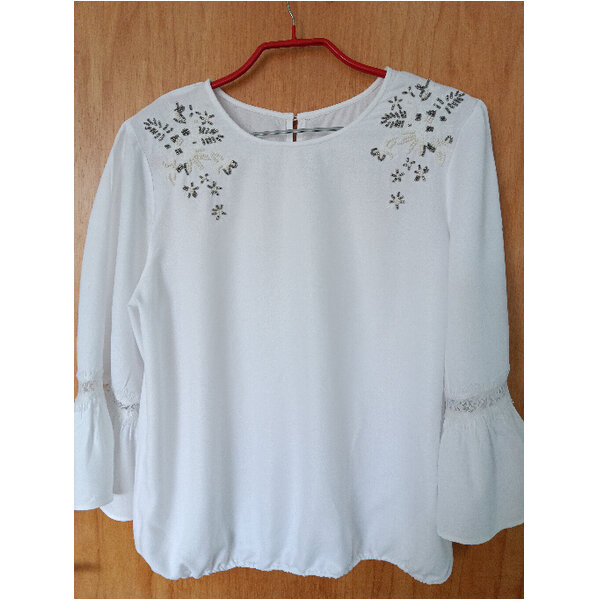 Schöne weiße Bluse mit Stickerei. Unten ein Gummiband. Achselweite 53cm. Länge 57cm. Etickete wurden alle entfernt. Sehr gute Zustand.