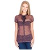 Diese Bluse ist aus einem festen Baumwoll-Voile Material. Sie hat kurze Ärmel, die am Ende einmal umgeschlagen sind. Der kleine Stehkragen wird im Nacken mit zwei Knöpfen verschlossen und es gibt ein kleines Guckloch, das auch die Rückenansicht attraktiv macht. Die Bluse ist weit und kurz geschnitten. Ein Gummiband im unteren Saum sorgt dafür, dass sie richtig sitzt.