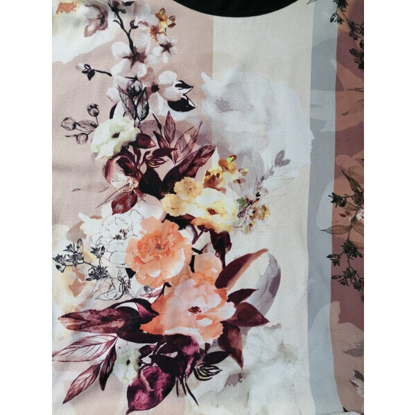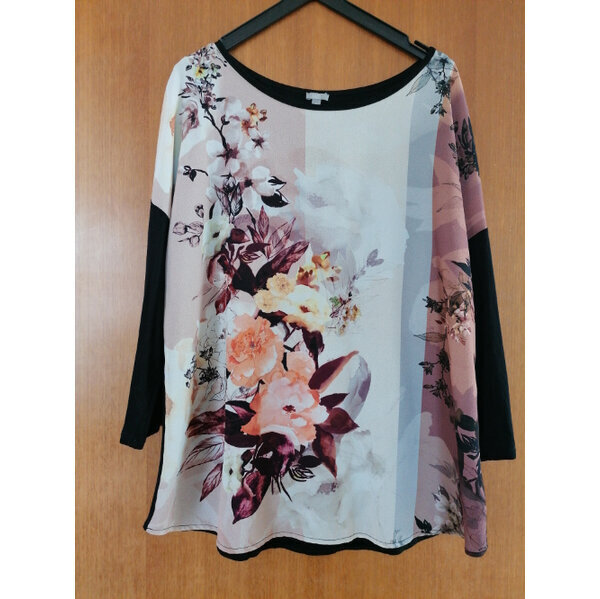 Schickes Shirt, vorne bunt mit Blumen, hinten schwarz. Breite 55 cm, Länge 65 cm.