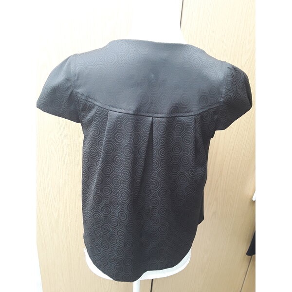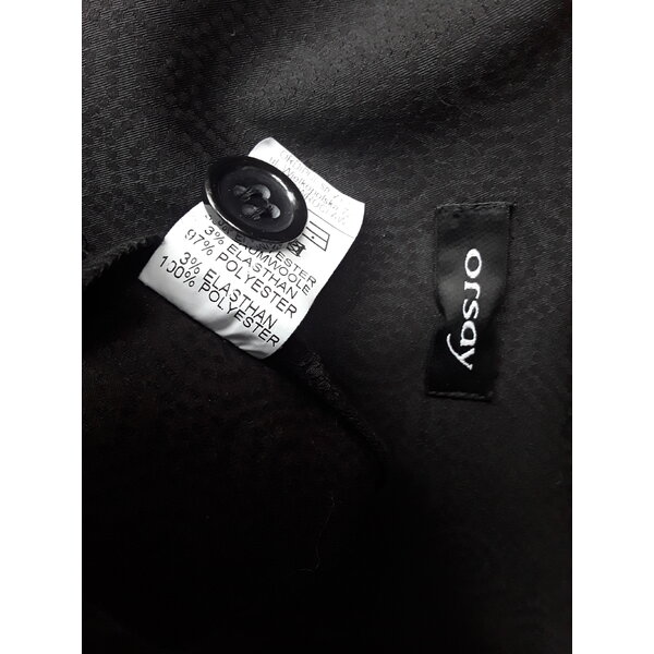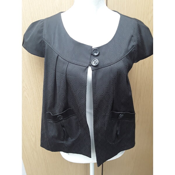 Raffinierte chice Blusenjacke in Schwarz, schöne Musterung von Orsay, mit 2 Knöpfen zu schließen oder offen tragbar, Ersatzknopf vorhanden