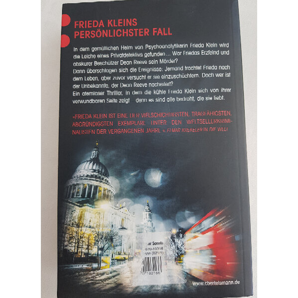 In dem gemütlichen Heim von Psychoanalytikerin Frieda Klein wird die Leiche eines Privatdetektivs gefunden ... War Friedas Erzfeind und obskurer Beschützer Dean Reeve der Mörder? Dann überschlagen sich die Ereignisse: Jemand trachtet Frieda nach dem Leben, doch zuvor versucht er sie einzuschüchtern. Ihre Nichte Chloe, Freund Jack, der schwer krebskranke Reuben und Josefs kleiner Sohn – sie alle werden Opfer von Anschlägen. Die Polizei tappt im Dunkeln, aber Frieda ist bald klar, dass die Verbrechen nicht Reeves Handschrift tragen. Doch wer ist der Unbekannte, der ihm nacheifert? Ein atemloser Thriller, in dem Frieda sich von ihrer verwundbaren Seite zeigt – denn es sind alle bedroht, die sie liebt ...