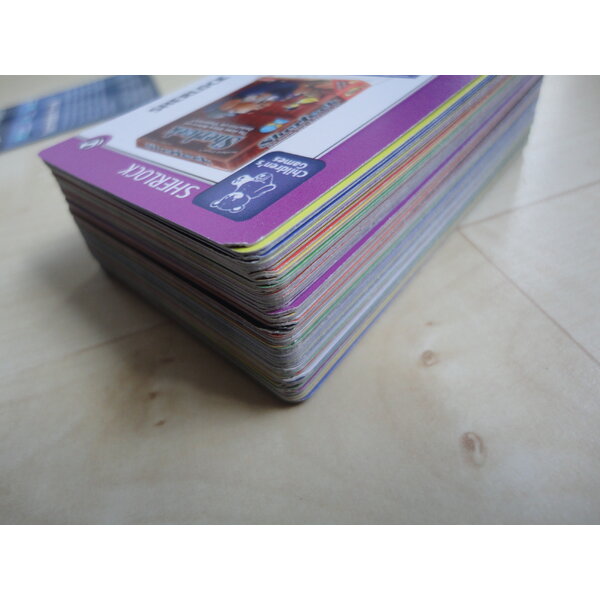 Das Spiel wurde an sich nie benutzt, dieKarten weisen an einer Seite/Ecke leider trotzdem ein paar Abstoßungen auf. Ansonsten aber vollständig und ohne weitere Gebrauchsspuren. Das Spiel ist auf englisch, ebenso wie die Anleitung. Die Schachtel weist ein paar Lagerspuren auf, ist aber auch in sehr gutem Zustand ohne gröbere Beschädigungen.