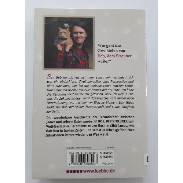 Die wunderbare Geschichte der Freundschaft zwischen James und seinem Kater wurde mit "Bob, der Streuner" zum Welt-Bestseller. In seinem neuen Buch erzählt James, wie Bob ihm in harten Zeiten und selbst in lebensgefährlichen Situationen immer wieder den Weg weist.