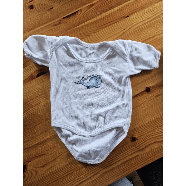 Weißer Body mit Walmotiv in Größe 74/80 - fällt aber eher kleiner aus
