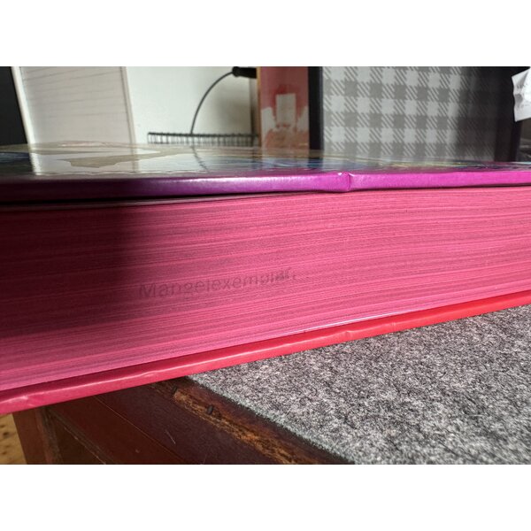 Eine Mini-Kerbe an der Hardcoverkante und ein schwacher ME-Stempel am unteren Schnitt.