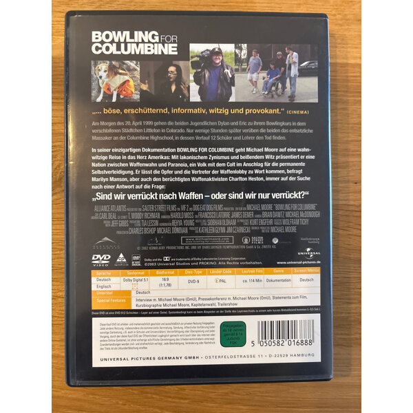 In seiner einzigartigen Dokumentation "Bowling For Columbine" geht Michael Moore auf eine wahnwitzige Reise in das Herz Amerikas: Mit lakonischem Zynismus und beißendem Witz präsentiert er eine Nation zwischen Waffenwahn und Paranoia, ein Volk mit dem Colt im Anschlag für die permanente Selbstverteidigung.