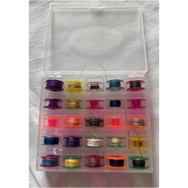 alles wenig gebraucht, manche Bobbins sind ganz neu, die anderen von mir mit Faden bespult.