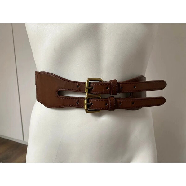 Toller Tailliengürtel mit zwei Schnallen in brauner Lederoptik, ist jedoch Imitat.