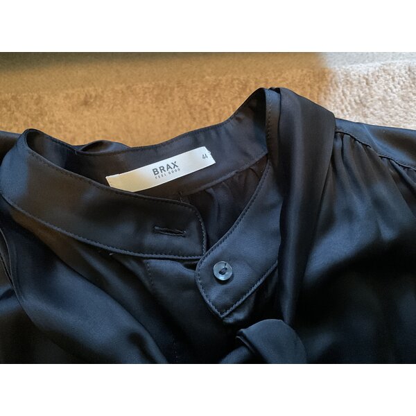 Brax Bluse , Gr. 44 schwarz , mit Schluppe / Schleife, könnte entfernt werden, ungetragen, schwere Viscose , materialfahne hab ich leider entfernt, ist richtig toll, jedoch nicht für mich