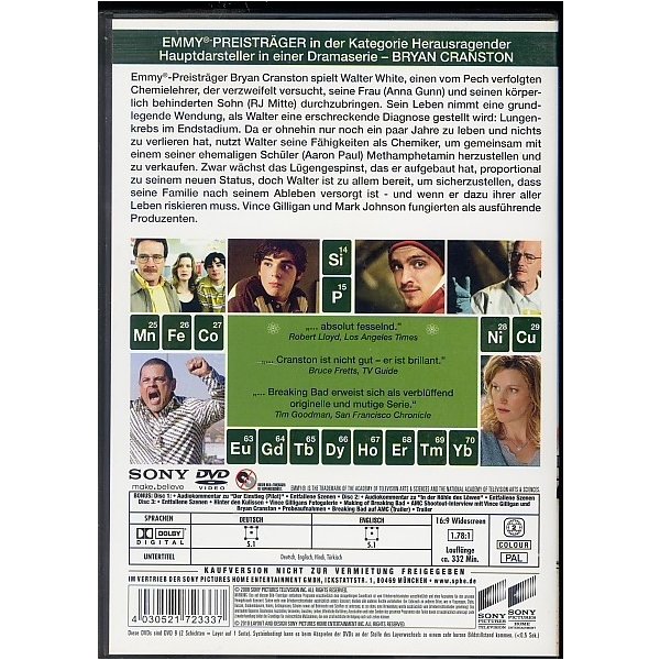 Emmy-Preisträger Bryan Cranston spielt Walter White, einen vom Pech verfolgten Chemielehrer, der verzweifelt versucht, seine Frau und seinen körperlich behinderten Sohn durchzubringen. Sein Leben nimmt eine grundlegende Wendung, als Walter eine erschreckende Diagnose gestellt wird: Lungenkrebs im Endstadium. Da er ohnehin nur noch ein paar Jahre zu leben und nichts zu verlieren hat, nutzt Walter seine Fähigkeiten als Chemiker, um gemeinsam mit einem seiner ehemaligen Schüler Methamphetamin herzustellen und zu verkaufen. Zwar wächst das Lügengespinst, das er aufgebaut hat, proportional zu seinem neuen Status, doch Walter ist zu allem bereit, um sicherzustellen, dass seine Familie nach seinem Ableben versorgt ist - und wenn er dazu ihrer aller Leben riskieren muss. Vince Gilligan und Mark Johnson fungierten als ausführende Produzenten.
