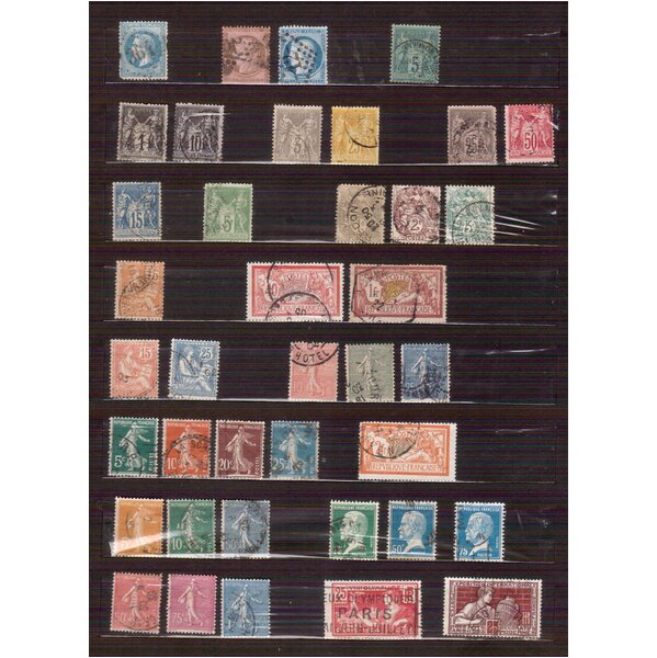 77 alte gestempelte Briefmarken der französischen Post aus den Jahren bis 1936. Versand ohne Steckblatt.