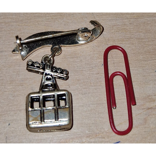 Kleine Seilbahn für Liebhaber der Bergwanderungen, Erinnerungsstück, wird mit einer Art Sicherheitsnadel an der Kleidung befestigt. Oder am Hut?