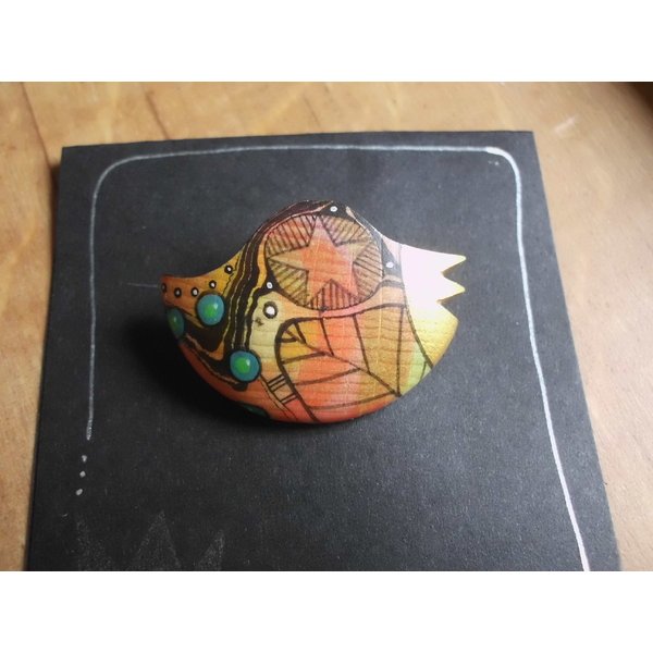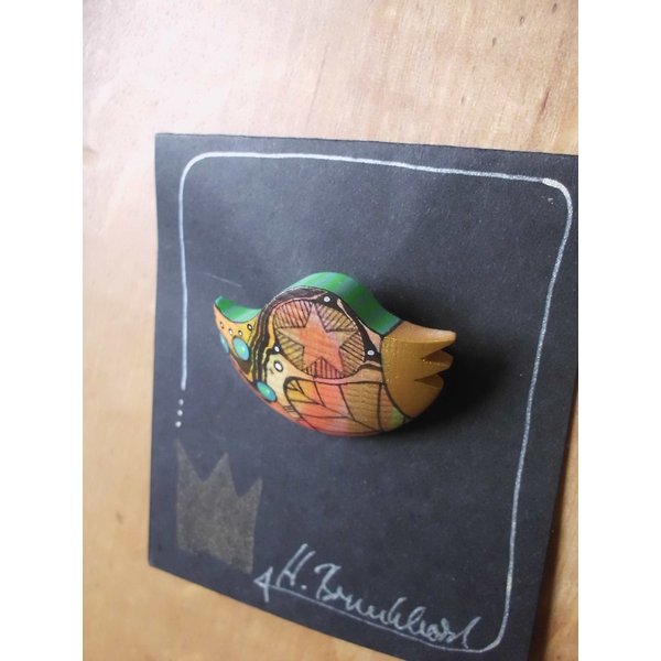 Ausgefallenen Broschen im Hundertwasserstil, Vogel mit goldenem Schnabel