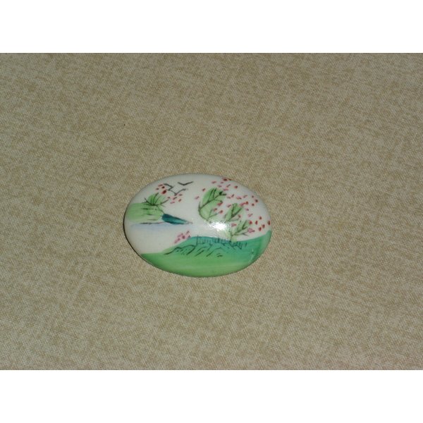 Tolle Brosche mit Herbstmotiv "Fluß Boot wehender Baum".