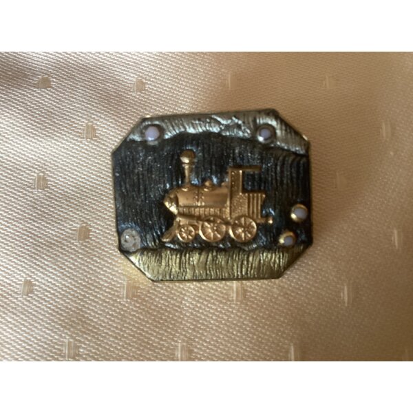 hübsche Brosche aus Metall, Motiv Lokomotive