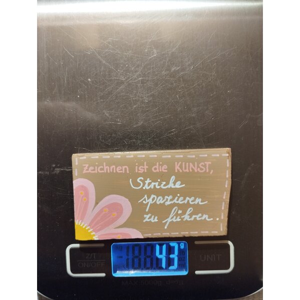 Handverlesen und Handbemalt mit Acrylfarbe und anschließender Lackversiegelung auf der Vorderseite